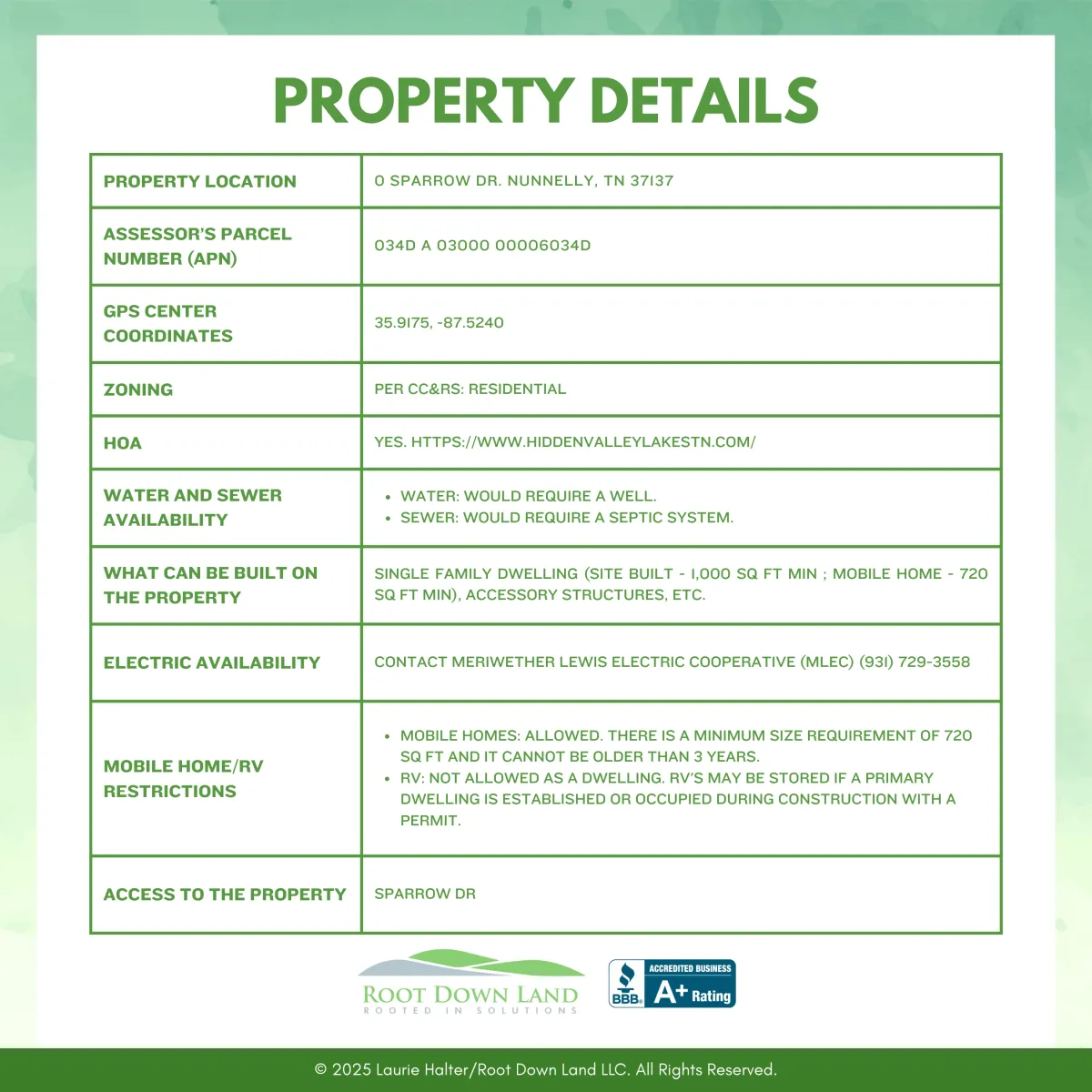 © 2026 Root Down Land. All Rights Reserved 2025